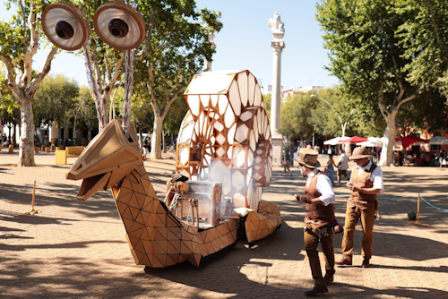 Con una altura de 3 metros y un largo de 8, este asombroso caracol gigante construido en madera sorprenderá a todas aquellas personas que se lo encuentren por el camino, donde podrán descubrir que dentro del caparazón vive un joven inventor que, con la ayuda del público y de su amigo el explorador, superará todos los obstáculos que se le interpongan en el camino. Así, comenzarán una larga travesía que irá llenando de alegría las calles de Granada.